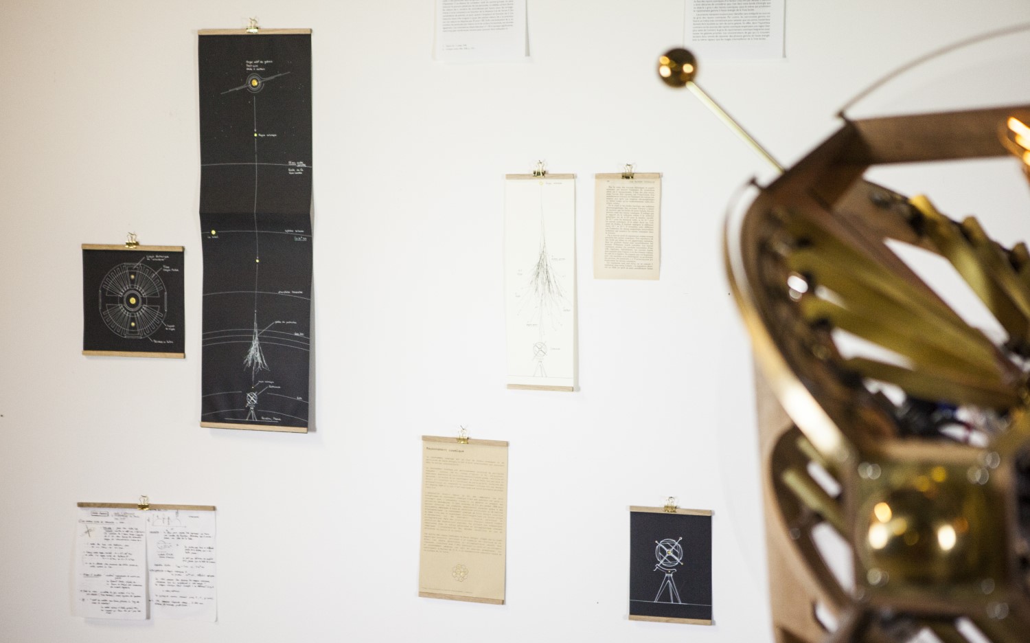 Inspired by celestial globes and science instruments from the 19th century like Foucault's gyroscope (which demonstrated the Earth's rotation), the Zettascope is built out of solid walnut, brass, acrylic glass, Geiger-Muller detection tubes, and various custom electronic equipment.